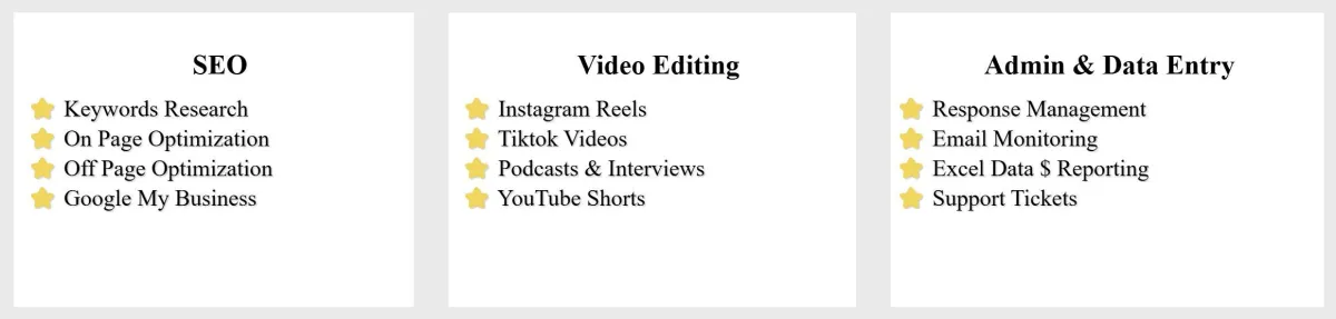 You’re not just getting a VA. You’re getting a TEAM of 08 People!